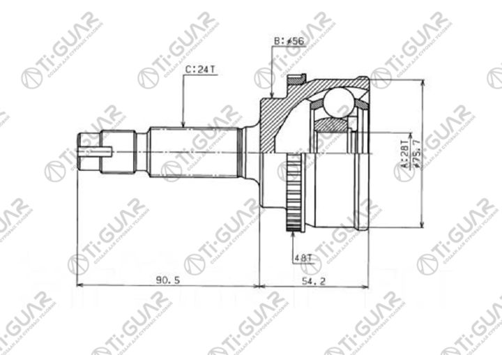 ШРУС наружный /передний правый /левый /TI-GUAR для Toyota Vitz Yaris Echo 1999-2003 CP10; 28*56*24; TG-9590Z48; (TO-090A48) 434100D020 TO090A48 TO90A48