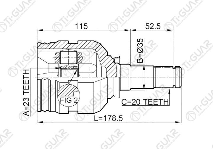 ШРУС внутренний /левый /TI-GUAR для TOYOTA Fielder ZZE122, Ipsum SXM10, RAV4 ZCA2#, Sprinter CE102 CE107 CE113 /23*35*20; TG-IN9503L; 0111SXM10LH 429006 4303002040